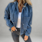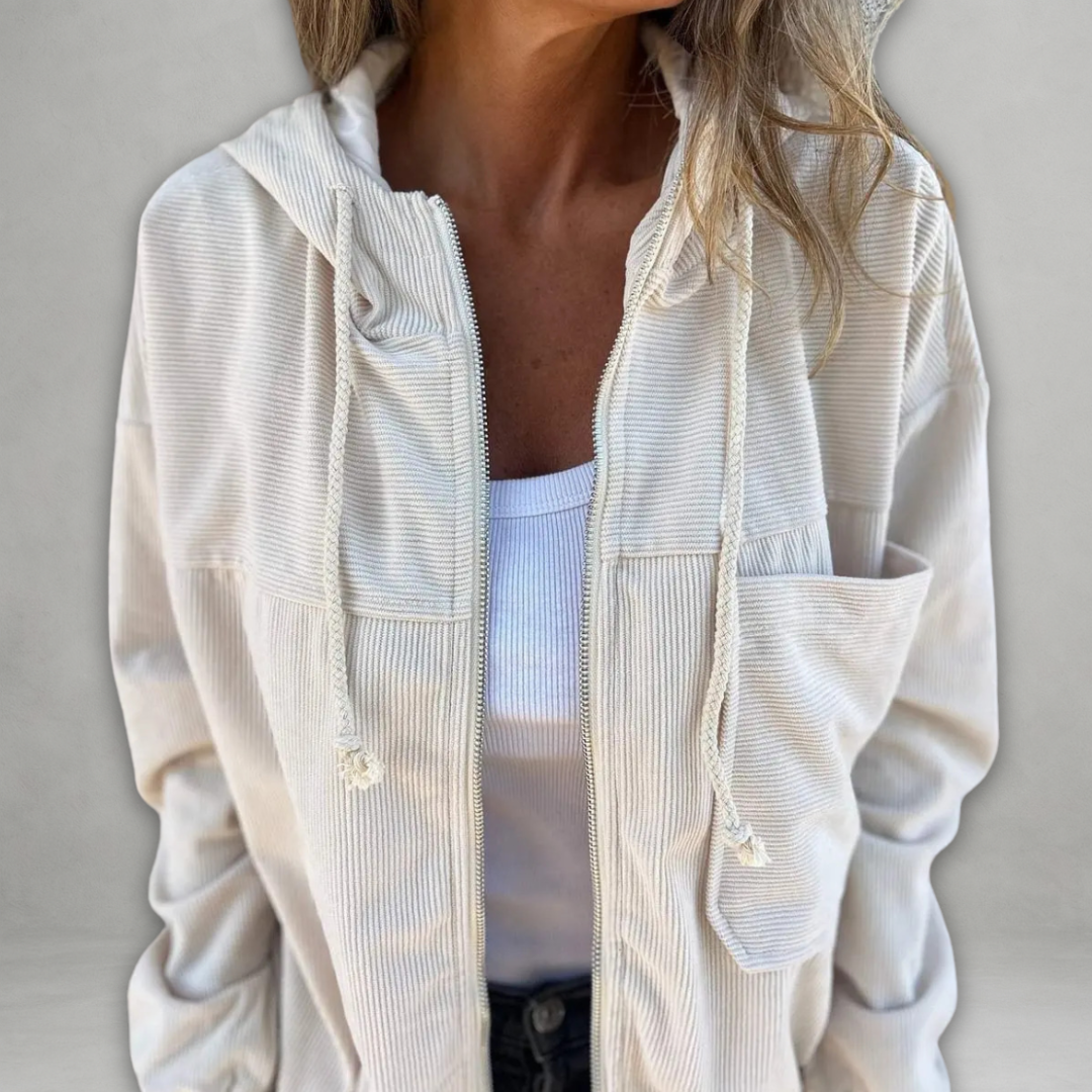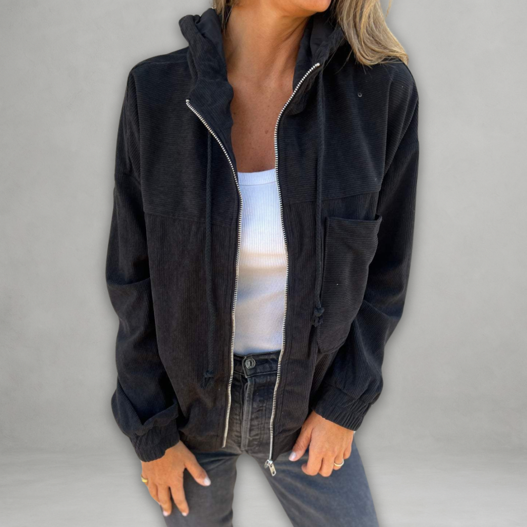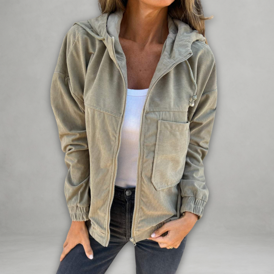 Questa giacca in velluto a coste con cappuccio è perfetta per un look casual e stiloso.
